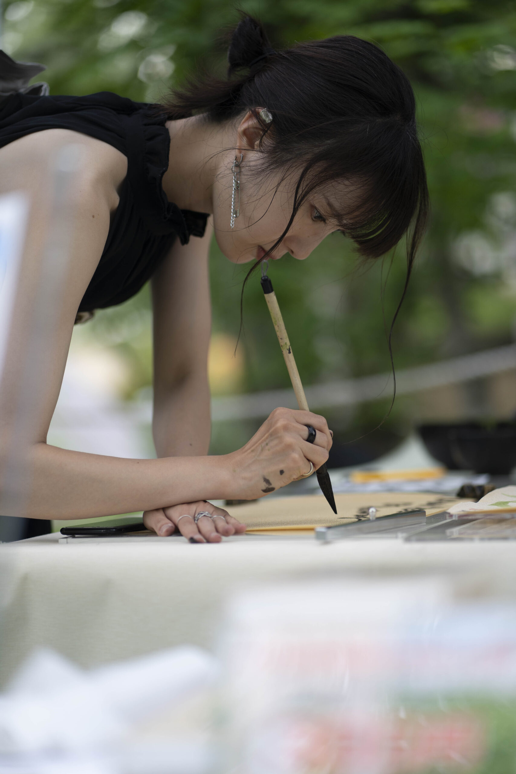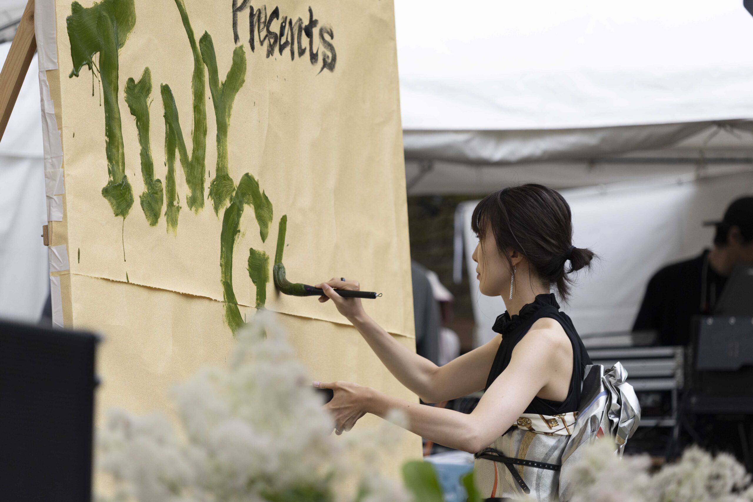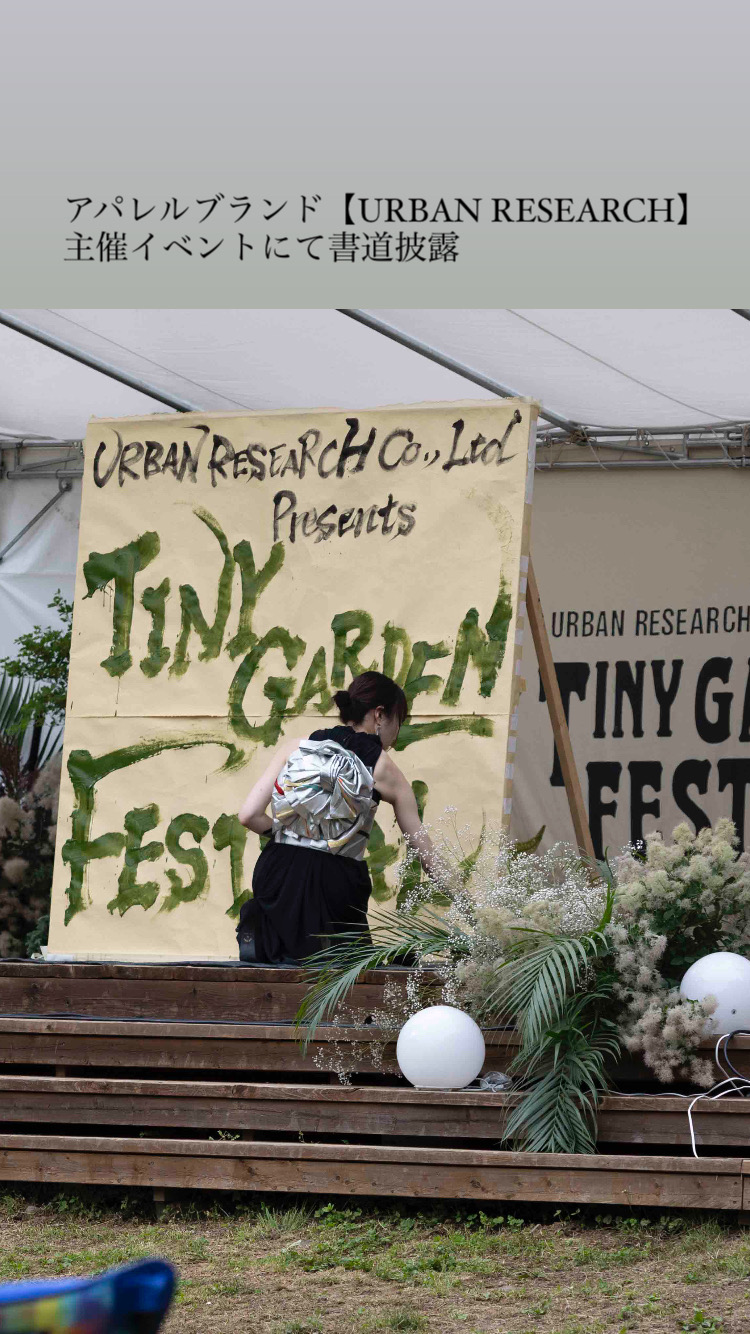 I performed calligraphy at an event hosted by Urban Research Inc. This event focused on the environment and nature, and with the support of the General Incorporated Association Es, I showcased my calligraphy using ink made from discarded vegetables and waste fusuma paper.
